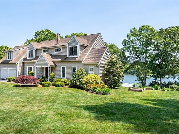 Enjoy morning sunrises from your own private dock, boathouse & sandy beach with 200'± of frontage in Lewis Point along serene Little Buttermilk Bay offering easy access to the Cape Cod Canal, Buzzards Bay & the Atlantic Ocean. This tasteful, light filled home was custom built in 2011 to capture mesmerizing water views & offers a modern, open floor plan. Wake up each morning to water views from the first floor primary bedroom with its own private deck, large walk-in closet & bath. A welcoming entry hall with adjacent half bath leads to a two story family room, kitchen & dining room with access to a large deck, all with water views. Easy access from the two-car attached garage to a mud room/laundry room. The second floor is a private oasis offering two bedrooms, a sitting room, full bathroom and a 437± SF unfinished room over the garage offering unlimited possibilities. Bonus finished lower level recreation room, workshop & half bath with direct access to the stunning yard/gardens.