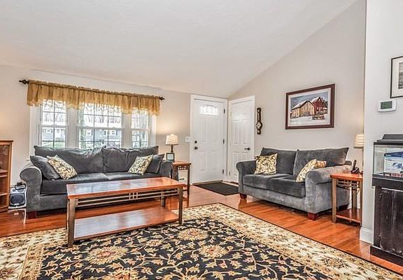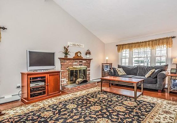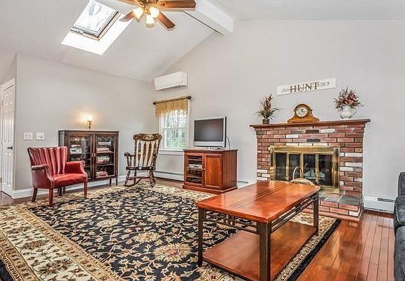 Sprawling 3 bedroom 1 full bath ranch in a wonderful cul de sac location in Auburn. Open layout with cathedral ceilings; Large living room with wood burning fireplace, hardwood floors and skylights; Remodeled kitchen with stainless steel appliances, breakfast bar and quartz countertops; Sunny and spacious dining room with lots of natural sunlight and hardwoods; Three great size bedrooms and modern full bathroom; Basement is finished with wood burning stove, laundry and bar area; Beautiful lot that overlooks Stoneville Pond where you can enjoy kayaking, canoeing and ice skating in the Winter months. Many updates to this home...New Trex Deck and vinyl railings- 2017, Kitchen Remodel-2016,New rubber and shingled roof - 2015, Basement Carpeting-2015, New Chimney Cap -2015, Septic System Installed -2013, Chimney repointed -2011, Installation of Hardwood floors-2010, Pella Windows- 2010,Updated Bathroom-2010, Interior/Exterior Doors replaced-2010; Just move right in!