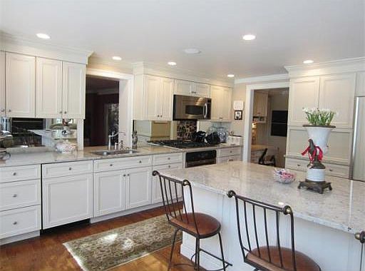 Romantic French Country House full of surprises! Rebuilt in 2005, this light-filled home with free-flowing plan retains all the grace of the 1930's while catering to today's active lifestyle. Every room exudes charm from the elegant entertaining areas to the heart-of-the-house kitchen with stone fireplace, glorious sun-splashed breakfast room and step-down family room with custom built-ins. The master suite with fireplace and serene outdoor views offers a quiet retreat. Four additional family bedrooms with three baths, cozy nooks, study spot, and a delight around every corner. The finished walk-out lower level leads to fully fenced private property sited on a beautiful winding road in Wellesley's incomparable Cliff Estates.