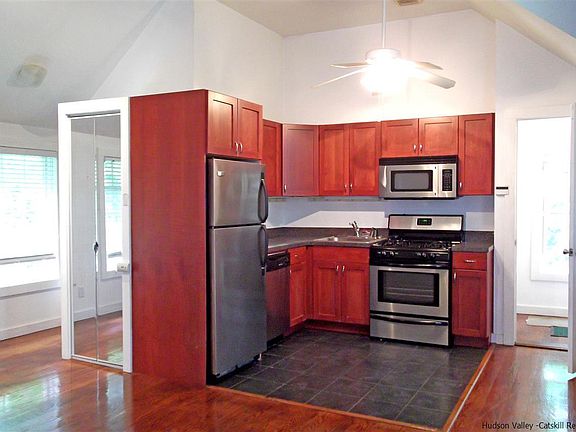 No car needed, walk to NYC bus! Check out this Waterfront upstairs full floor studio apartment with a peaceful babbling brook right outside your door and in the heart of the village of Woodstock. Two doors away from the Garden Cafe (Vegan) and the Village Green. This wonderful studio apartment has been fully renovated with stainless steel appliances and a great open floor plan with tons of windows and light. First, last and one month security and current credit report for move in and tenant pays all utilities.