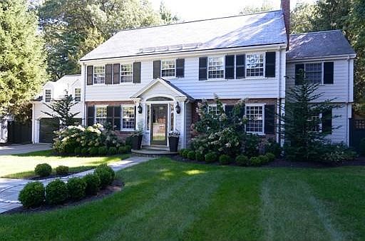 Quintessential slate-roofed colonial with sophisticated style and quality appointments. Stunning foyer leads to lovely formal areas, quiet studies, new exceptional kitchen with top-of-the-line appliances (Miele, Sub-zero, Wolf), cherry Butler's pantry and oversized mudroom. Family room with cathedral ceiling, Palladian window and French doors to the outside. Four generous bedrooms and updated baths are complemented with beautifully finished lower level with fireplace and full bath for added flexibility. Numerous glass doors lead to a an expansive deck with sun-dappled pergola and professionally landscaped, fenced property.