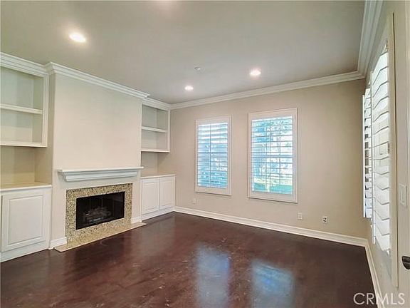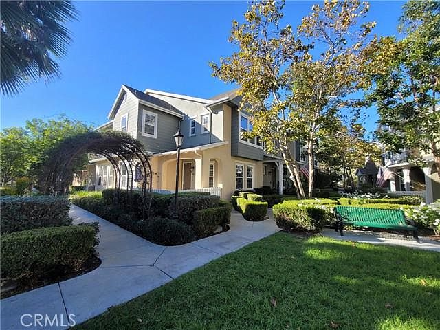 Premium end unit location offers nice privacy and views of the lush greenbelt area. The arched trellis walkway leads you to the charming whitepicket fence of the private front porch of this beautiful Branches town-home. Enter the front door and you will be impressed with the wonderfulflow of the open floor plan boasting over 2,000 square feet featuring 3 spacious bedrooms and 2.5 baths. Warm hued wood flooring, crownmolding, plantation shutters, designer paint tones, recessed lighting and neutral carpeting are featured through out the home. The living room hasa cozy fire place with granite accents and tasteful built-in cabinets. The kitchen features granite counter tops, stainless steel appliances, white cabinetry, walk-in pantry & an island and is open to the family room with its custom built-in cabinetry and ceiling fan. The nice sized dining room is open to both the kitchen & family room allowing for ease in entertaining. Upstairs the master suite includes a large master bedroom with abundant natural light that overlooks the green belt. Dual sinks, walk-in closet and separate tub and shower in the master bath. Two good sized secondary bedrooms have ceiling fans, walk-in closet in one and great separation from the Master. A convenient upstairs laundry room and computer niche area finish off the upstairs. Enjoy Ladera Ranch's many amenities include pools, club houses, water park/skate park, hiking & biking trails, tot lots, picnic areas, bbq & more