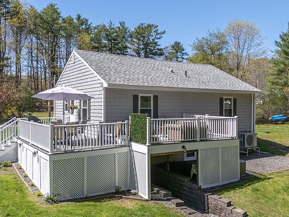 Welcome to your coastal retreat on the Ogunquit line! This beautifully upgraded and meticulously maintained home sits just minutes from the beach on a picturesque corner lot with a babbling brook, a large yard, a fire pit, and a spacious storage shed. Inside, you'll find new hardwood flooring through-out the first floor, beautiful moldings, upgraded lighting as well as plenty of recessed lighting, and a new forced hot air heating system complete with central air conditioning for year-round comfort. The upgraded kitchen features stainless steel appliances, quartz countertops, a wood-accented ceiling, under cabinet lighting and a cozy, stylish fee leading to bright & sunny living room offering a ship-lapped wall, recessed lighting & large windows. Paddle fans in all the bedrooms and the family room add charm and functionality. The finished lower level offers a fantastic family room—perfect for additional sleeping quarters or guest space—complete with a electric fireplace, full bathroom, surround sound system & offers a walk-out door to the backyard. For ultimate entertaining, step out onto the expansive maintenance free wraparound deck, where you can relax or host gatherings in a peaceful outdoor setting. This property truly offers a turn-key experience for beach lovers and entertainers alike. Don't miss the chance to own this perfect blend of coastal living and modern upgrades! Additional amenities include a Generac panel, vinyl siding, vinyl windows, full bathroom on the first floor providing a tiled shower/tub, oversized vanity with quartz countertop & addition linen closet, you'll also find multiple closets and storage spaces through-out and an oversized driveway provides for plenty of parking! It's the perfect setting to sit back, relax & enjoy!