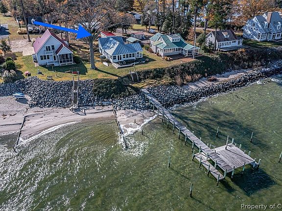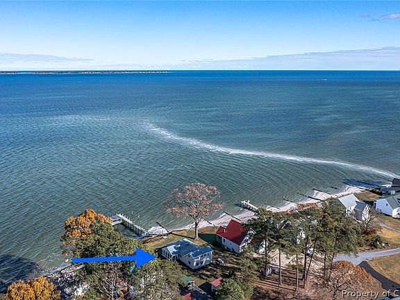 Lovely waterfront cottage perched on the Rappahannock River with views of the bay. This 3 bedroom, 2 bath home boasts an open kitchen/living/dining room with spectacular views! The first floor includes an ensuite bedroom with walk in closet, a second bedroom, hall bath and a separate laundry room. The second floor offers a family room and third bedroom. The sandy beach and large pier with 4’MLW make water access a dream. Located in a quaint river community - which is not an HOA - this .35 acre property is the perfect get away! In addition to the 1548 square foot home, this property includes a detached shed with plenty of room for water toys and your golf cart. This property is out of the flood zone and the shoreline is well rip rapped.