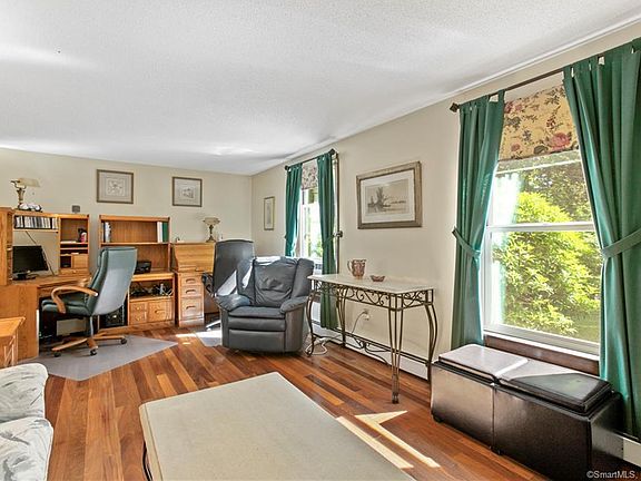 You will love to sit back, relax, grab your favorite beverage while enjoying this amazing sunroom anytime of the year! There are lots of windows, and a little 'kitchenette' area with a sink and a mini frig. The home boasts a remodeled kitchen with tiled floor, granite counter tops and beautiful cabinets with soft close drawers. Gorgeous hardwoods will be found in the living room, dining room and family room. The family room has a wood burning stove and built-ins on both sides. There's plenty of room to gather in this home! Upstairs features a primary bedroom with bath, plus three additional good sized bedrooms. If this isn't enough, the lower level is mostly finished with a large family/recreation room, and an additional room which could be used as a den, office, or craft room. Still, there's another room where you will find the washer and dryer, and plenty of storage cabinets. The unfinished portion of the basement houses a brand new boiler and water heater, and also serves as a wonderful workshop. This lovely home is located in the Pheasant Run section of Gales Ferry, on an attractive acre and a half of land! BONUS: Home wired for a generator! Make your appointment soon!