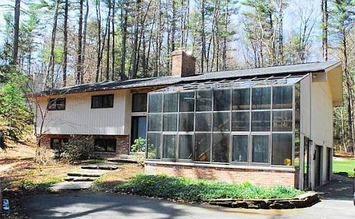 Located on a quiet side street this meticulously maintained two-level Contemporary has 10 room, 4 bedroom, 3 bath, has over 2,900 square feet of living space on private 1.5 acres, welcoming entry opens to the sizable living room with brick fireplace and dining room with hardwood floor, family room with wood stove, office or studio room, elegant master bath, utility room with washer/dryer hookup, oak hardwood floors. A special feature facing the eastern sun is innovative solarium/greenhouse. Oil-fired forced air heating system with 3 heat zones, separate system for central air, oil-fired hot water boiler with storage tank, humidified and electronic air filter system. Attached 2-car garage. House is set back from road with sunny open back yard. In North Amherst minutes from UMass campus and Amherst Center. An exceptional home ideal for entertaining and comfortable living. Do not miss your chance to see this excellent home!
