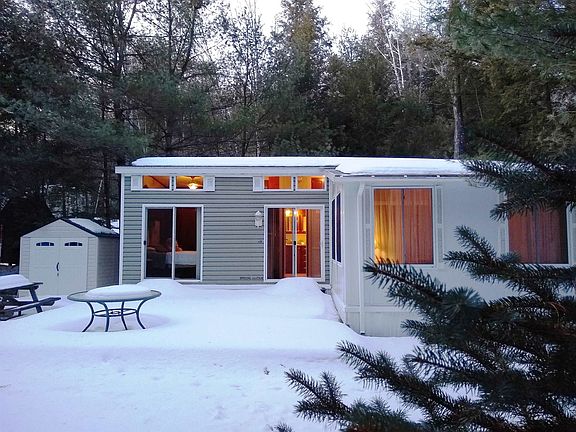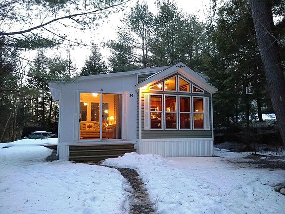 Beach Access! Enjoy the summer at Squam Lake's private beach that is a short golf cart ride from your vacation home....sellers already paid for the 2022 season. Drive through the private gate of Squam Lakes Recreational Camp Resort to your Kropf Special Edition vacation home that is nestled among the trees with mature plantings and very private. Your home was custom designed by the seller. From your long driveway, enter inside to an open floor plan with no wall between the porch and kitchen/dining area. The porch is used as the living room with 2 pull out sofas for extra sleeping. The kitchen, with stainless steel full size appliances including full size dish washer has plenty of counter space and a full size kitchen table in the dining area. The master bedroom with a full wall wardrobe and its own sliding glass door allows for direct access to your large 2 tier patio. And after a day of fun, relax in your own 2 person Jacuzzi Tub. A stackable washer and dryer are included. Your condo is located just a short walk to the heated indoor pool with hot tub. Or a golf cart ride to the outdoor pool and the large club house with full kitchen, workout room, laundry, pool, ping pong table, foosball and games. 4 Person Golf Cart is included. Other amenities include basketball, horseshoes, playground area and various activities throughout the summer. Whether you like boating during the summer or skiing and snowmobiling during the winter, your Happy Place is close to all area attractions.
