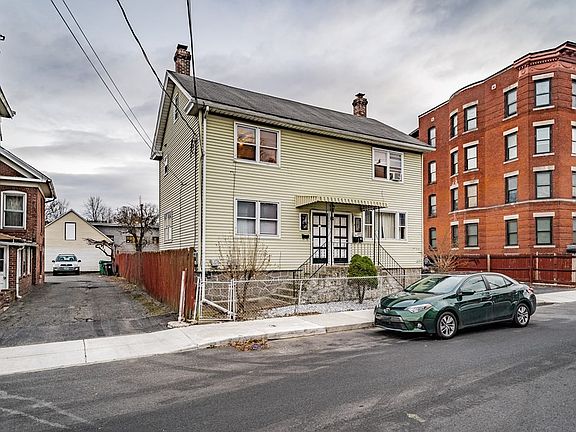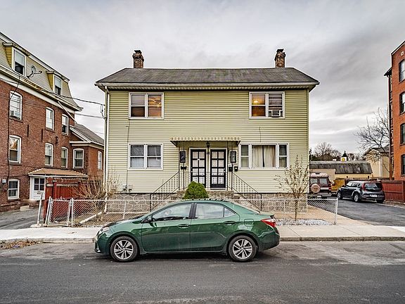 Clean, Fully Rented and Updated 3 Family with a large fenced yard, garden area, and 2 car garage (currently used by owner). Modern Wiring, Circuit Breakers, Vinyl Siding, All-Electric Heat. Lower Apartment has Laundry in Unit. Electric Stove and Fridge x3 to Remain. Units all have fresh paint. Some updated flooring. Top unit has a walk up attic- completely unfinished for storage.