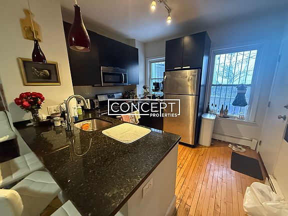 Modern 3 bed 1 bath available for 9/1/2025! Hardwood floors Modern kitchen with granite counters Living room Large bedrooms Renovated bath Laundry in unit