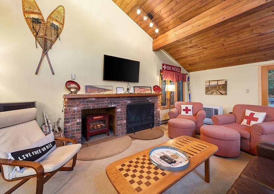 Welcome to this inviting 2+ bedroom, 2 bath condo set in a peaceful, wooded setting at the base of Campton Mountain. The main level features a spacious open living and dining area with attractive wood cathedral ceilings, creating a warm and comfortable atmosphere. The adjoining galley kitchen offers newer cabinetry, granite countertops, and a breakfast bar. Sliders from the living area lead to a private ground-level deck, surrounded by trees and offering a quiet outdoor space. The main floor includes a nicely sized bedroom and a full bath with laundry. Upstairs, you’ll find another bedroom, a full bath, and an open loft-style room overlooking the living area—currently used as extra sleeping space but easily enclosed for an office or den. A gentle wooden staircase leads to a cozy loft room with space for multiple beds, ideal for guests or kids. This property is part of a resort community with access to a large recreation center featuring four pools, tennis and pickleball courts, basketball, gym, restaurant/bar, swimming pond, on-site ski area and more. Located just 15 minutes to both Waterville Valley and Loon Mountain, and surrounded by hiking, golf, kayaking, and year-round outdoor activities. A comfortable layout, great outdoor space, and a prime mountain setting—ready to enjoy.