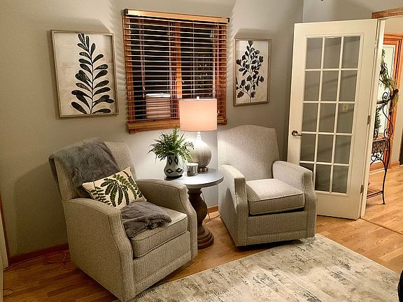 Beautiful ranch home with all the privacy of acreage living but all the convenience of living in town. This well kept 3 bedroom, 2 bathroom home features a beautiful oak kitchen with solid oak doors throughout. The spacious kitchen has a large island, and separate dining room space. Beautiful French doors lead to a second living area on the main level. The laundry area is conveniently located on the main level. This home has exceptional storage throughout the entire home. Master bedroom with ensuite bathroom and walk in closet. The lower level features a large cozy family room with a wall bar that is perfect for large gatherings. The storage room has a kitchenette area complete with sink. Tons of storage complete the lower level. Outdoor living is exceptional at this property featuring two levels of outdoor entertaining space in the back yard of this corner lot. Cedar deck on the main level with an additional patio level featuring stamped concrete. The back yard property features a Red Twig Dogwood hedge adding lots of privacy for back yard lounging. Beautiful perennial garden borders the property. The double garage has cabinetry and a closet for added storage. A large storage unit in the back yard completes this exceptional property. Newly shingled roof 2023 and furnace 2023. For information and showing request via cell phone or email at: 641-494-9644 or 641-494-9123 email: jtimmermn@gmail.com