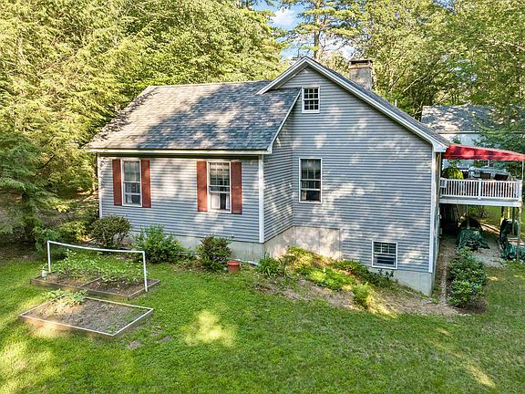 In-town Extended Cape w/3+ bedrooms on 1.08 Acre wooded lot. Walking Distance to Town and Carry Beach. This is an extremely comfortable and spacious home. The kitchen has it's own "Breakfast Nook", is open to the dining room, featuring a center counter, all granite countertops, large stainless appliances, center stone fireplace w/a wood burning stove built in & an inviting walkout to a large covered deck for sitting or al fresco dining. The living room shares the center stone fireplace with a full size wood burning fireplace, plus beautiful hardwood floors throughout. Two first-floor bedrooms, one is en-suite, plus a large second floor en-suite and loft. The lower level is a walkout to the backyard with a large family room with a propane stove, plus another bedroom and bath. There is also a workshop. Two-car attached garage and a very large 2+ car detached garage/man cave, being used as a workshop for beautiful wooden boats, with work benches. The floor has radiant heat and is ready for boats/antique cars or expensive hobbies. There is a full size second floor workshop and/or storage facility. This property offers privacy and at the same time, puts you a few minutes to downtown Wolfeboro and even closer to beautiful sandy Carry Beach at the end of Winter Harbor, looking out across Lake Winnipesaukee. There are also multiple marinas close by that you could gain access to Lake Winnipesaukee by boat.