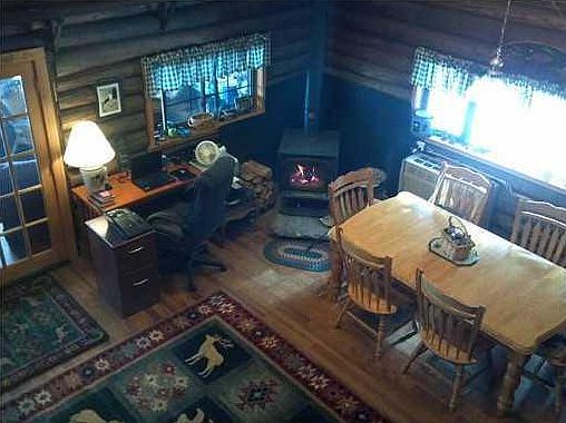 Furnished log home w/stone fireplace, loft, enclosed porch w/direct water views. NEW KITCHEN! Wood stove, direct vent gas heat. Wood floors, new bathroom shower. Large lawn area, just steps away from the shore. 30 min to skiing atSugarloaf. Dock included!