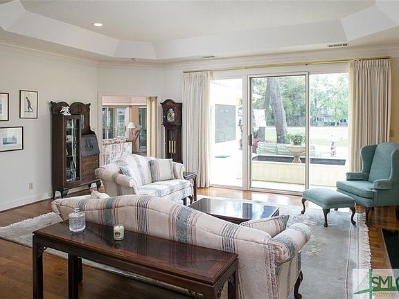 Spacious home located on a professionally landscaped lot with a beautiful view of the Plantation golf course. This custom-built home has excellent architectural detail seen in the millwork, ceilings and a butlers pantry with entry from both the kitchen and formal dining room. A split bedroom floor plan with a bonus room including a full bath is also featured. The formal living room has a fireplace and large sliding doors with views of the mature landscape and golf course. Wonderful den with savannah brick fireplace, wet bar and walls of sliding doors or floor to ceiling windows that allow lots of sunlight and access to the two decks overlooking the fairway as well as a screened in porch for year-round relaxation. There is a gracious master bedroom with sitting area, large sliding doors that open to the deck and garden with golf views. AC units have been replaced, and the roof is two years old.