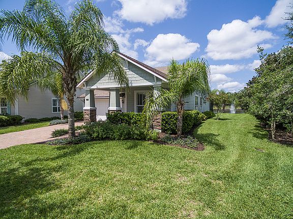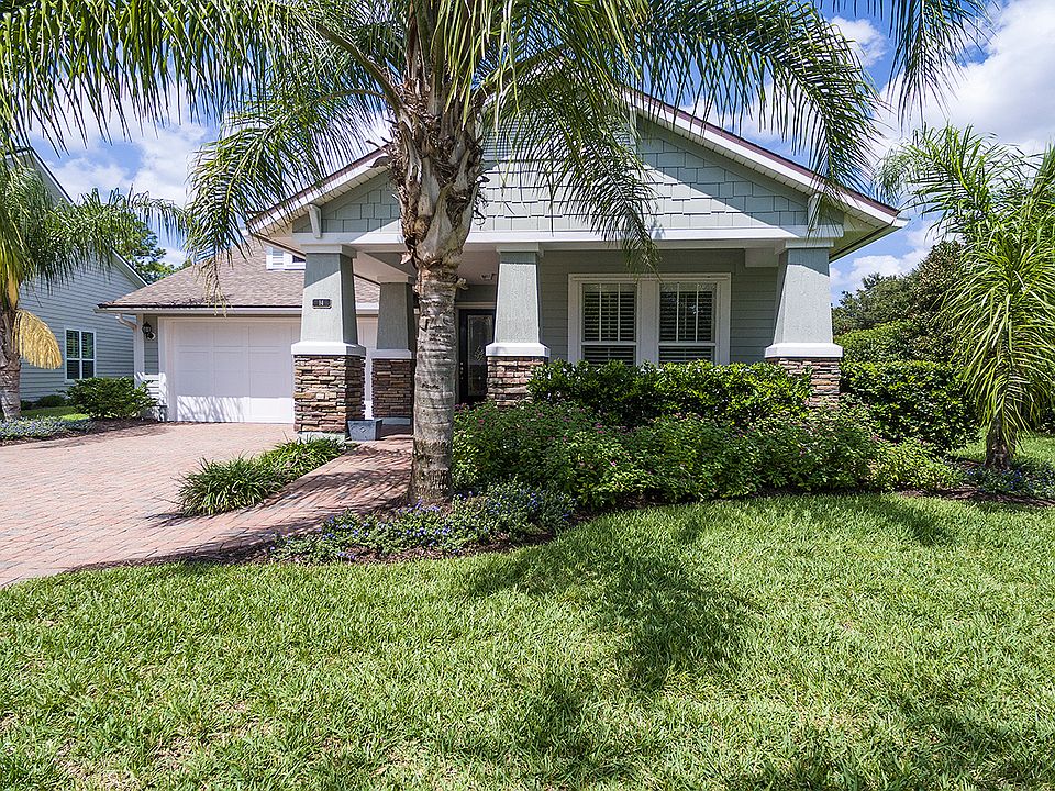 Fairytale cottage on a lake! A unique opportunity to own a piece of paradise in the exclusive, gated community of Coastal Oaks in Nocatee. This strategic location across the street from the community clubhouse, pools, and fitness center, and around the corner from the community park and nature boardwalks, offers a lifetime of Saturdays. This darling home features 8' doors, 10' ceilings, coffered ceilings, soaring archways, French doors, fireplace with marble surround, granite in kitchen, wood floors, plantation shutters, storm room, storm shutters, large attic over garage with drop-down stairs, 18X24 screened patio, paver driveway and lanai, ramped front entry for wheelchair access, stemwall foundation, 8' tall garage door, mature landscape, privacy hedges and majestic palms.
