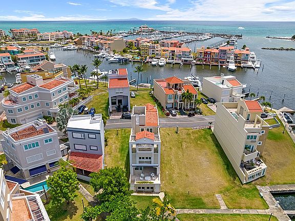 Beautiful property with Marina dock, located in Peninsula de San Juan - Palmas Del Mar 4 bedrooms, 4 bathrooms 4,496 square feet, including terraced travertine floors, Storm Shutters & elevator Master Bedroom on the top floor, terrace, and a kitchenette. Basement with family room, full bathroom, dining area, kitchenette, and storage areas.