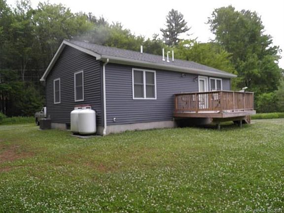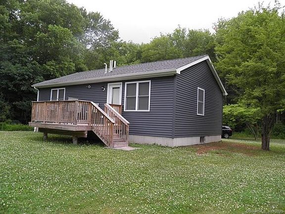 Waterfront property located on Bailey(s Pond, with dock on quiet pond for swimming, fishing and boating. House was built in 2017 with Central Air and deck overlooking 1.77 acres of privacy and wildlife. Septic system replaced in 2020. Property includes the original quaint 600 sq ft 1955 cottage. Water and sewer not connected to the cottage, but the possibilities are endless. Wood Stove in the Cottage to warm you in the fall, with large porch with 3 sides of windows to enjoy the view of the water and breezes. Let this be your retreat in the woods. Convenient to RI and casinos in CT.