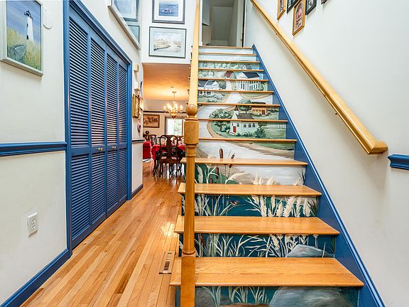 Desirable Nantucket style at Southport, Cape Cod's award winning 55+ active adult community. Located on the fourth tee, this light filled home has so much to offer. Enjoy the unique decor and color scheme with Cape Cod charm or imagine your own personal touches. The light and bright kitchen overlooks the spacious living area with a gas fireplace and custom built in TV cabinet above. The primary suite on the main level features a walk in closet and private full bath. Upgrades include crown molding, custom blinds and hardwood floors throughout the main level. Upstairs you will find a roomy guest suite, loft area and the highly desirable skylit bonus room provides the additional space you're looking for. The full unfinished basement is ideal for storage. Relax on the expansive back deck overlooking the beautiful golf course view. Walking trails, tennis, bocce, shuffleboard, pickleball, a 9 hole golf course, indoor & outdoor pools, a fitness center and daily activities are just some of the amenities offered. Start enjoying the Southport life just in time for the Spring and Summer seasons!