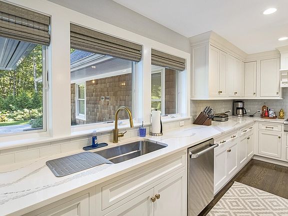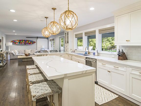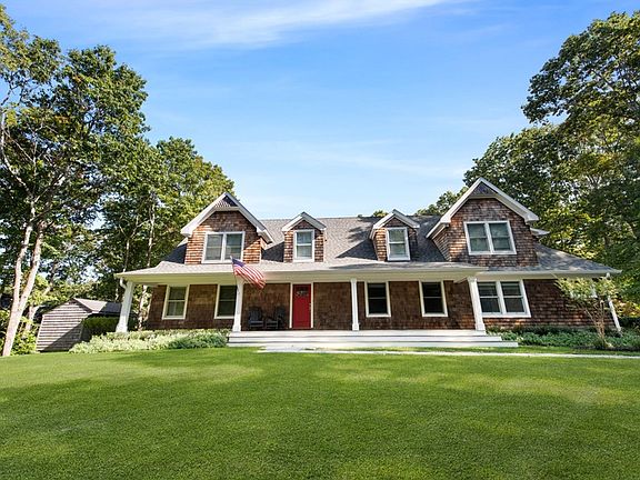 Designers own home recently renovated and updated home located in Sag Harbor on 0.84 acres. This pristine turn-key 3800 sq ft 4 bedroom, 4 full bath, 2 half bath home features an open layout, eat-in, fully equipped gourmet kitchen with a walk-in pantry. The first level also includes a junior master en-suite bedroom, a powder room, a great room with stone gas fireplace, a dining area, and mudroom, and 2 car garage. Upstairs the spacious primary suite offers vaulted ceilings, a sitting area with two large closets and a generous primary bathroom Two additional en-suite bedrooms, numerous large storage closets, and laundry complete the second floor. The lower level adds 1440 +/- SF of unfinished space with additional laundry. The outdoor entertaining space includes a bluestone covered patio, sitting area, a heated gunite pool with sundeck, outdoor shower with bathroom, and an expansive extensively landscaped property. Centrally located minutes to the beach and the Village of Sag Harbor with its shops, restaurants, and marinas.