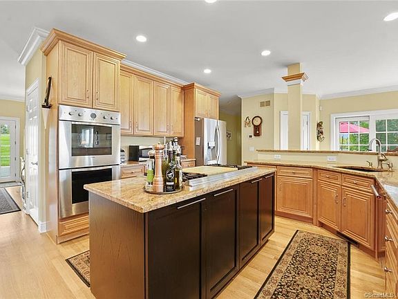 Pristine custom built colonial situated on almost six acres of majestic landscaped property with miles of views, on a quiet cul-de-sac. This truly turn key home features on the main floor a gourmet open kitchen and living room with custom cabinetry, granite counters, newer appliances, Viking stove and range, hardwood floors with inlays and crown molding. The master suite includes a fireplace, a private deck, master bath, jacuzzi tub and oversized walk in closet. The lower level game room and entertainment area has a home theater, a wine cellar and a workout room. An automatic generator will power most of the home in case of an electrical disruption. Situated on the back of the property is a custom forty five foot two story barn with a thirteen foot high garage door capable of fitting just about anything imaginable. The second floor of the barn could be finished as a studio or living space. Just minutes to I-84 makes this home great for commuting and shopping. Behind the property is Burr Farm. One hundred acres of protected open space great for walking, riding and enjoying nature.