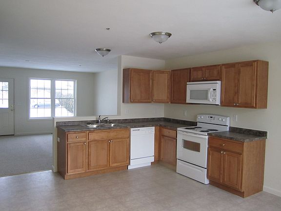 Enjoy townhome living without an HOA! 14 Pine Street Unit #3 is a 1,320 sq ft interior 3 Bedroom townhome with 1.5 bathrooms, natural gas heat, central AC, private patio, and two assigned parking spaces. The main living space includes an open concept floorplan with kitchen (and electric stove), dining area, living room, and half bathroom. On the second floor you will find the 3-bedrooms fully carpeted, linen closet, and full bathroom. The master bedroom also features a walk in closet. There is plenty of additional storage in the 672 sq ft unfinished basement where the washer/dryer hookup is also located. Socha Companies is proud to be pet friendly at all our communities; we also include cold water, sewage, trash removal, landscaping, 24-hour emergency maintenance and snow removal. No smoking. Rent includes trash, sewer, cold water, landscaping, snow removal. Residents are responsible for natural gas heat, hot water, electric, cable/internet. There is a 2 pet limit per unit with additional monthly pet fees ($25 per cat, $40 per dog), no weight limit, inquire for restricted breed list. 12 month lease at signing, option to renew on a month to month basis, or for another 12 month term.