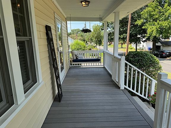 Here it is... The most charming home you've seen! It has a beautifully maintained exterior with a large front porch to sip your morning coffee. A well-cared-for updated interior you're going to love. The Main floor has large open rooms flowing well starting with your large foyer with a lovely restored tin ceiling that flows into your family room adjacent to your dining room all featuring hardwood floors, coffered ceilings, and charm. In addition to this, is your adorable farmer's kitchen. The second floor has 2 bright Large bedrooms with Oversized closets and features an additional room in between for your office and a fully updated bathroom. This level also features beautiful hardwood floors and large windows giving the home a bright and cheery vibe. The lower level has a storage area with laundry and a partially finished area for extra living space to suit your needs. The outside has a private fenced-in backyard with a deck and a one-car oversized garage. Great Location!