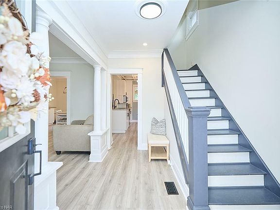 This renovated home has 1122 sqft of finished living space with great curb appeal and is centrally located to everything the growing city of Welland has to offer! The welcoming covered front porch can be enjoyed all day long, rain or shine! The fenced backyard has a large deck with sitting area, shed and lots of privacy! There is new flooring throughout the home, and a fantastic kitchen with granite counters and lots of cupboards for storage space. You can access the kitchen through the side door to the private interlock brick driveway. The kitchen is open to the dining room with patio door access to the fully fenced yard with a great shed for outdoor storage and a large deck to enjoy all summer long. The foyer is very spacious and opens to the living room, with lots of space to relax and unwind at the end of the day. There are three bedrooms and one bathroom upstairs, perfect for the growing family or for guests. In the basement, you will find the laundry area and lots of extra storage room. This space could even be finished to increase your living space. This Welland location is on the public bus route, kids can walk to schools, Niagara Street amenities are close by, as well as the Welland canal trails, parks and Welland festival locations. Niagara College and Brock University are both within a short drive, not to mention all that the Niagara Region has to offer - Casino, world class wineries, endless golf courses, Niagara Falls, a short drive to the USA or Toronto. This home is turn-key with nothing to do but move in and enjoy!