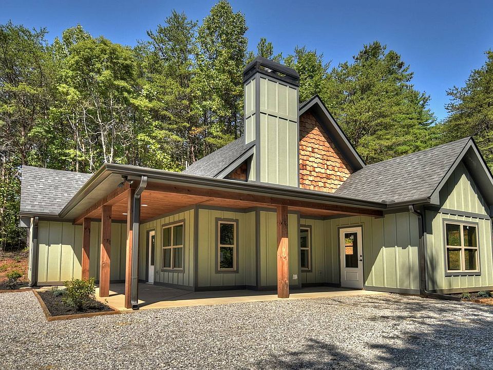 Craftsman New Construction with USFS frontage! 2br + loft/2ba with level no step entrance offering super easy access with paved road frontage and rare level terrain. Low maintenance exterior with perfect mix of rustic finishes & covered front porch wrapping around 2 sides of home. Main level offers open concept floor plan with cathedral ceilings & wood burning fireplace. Spacious kitchen with island/granite counter tops/stainless steel appliances, ample dining space with lots of windows for natural light, master suite with double vanity and custom tile shower. Guest bed and bath complete main level. Upper level offers a generous size loft area. Great location within minutes of Blairsville, Lake Nottely, and all that the North GA mountain have to offer. Would make a great full time residence or mountain getaway!