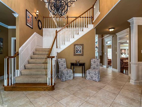 Beautifully landscaped this home welcomes you into an impressive foyer w/formal dining & private ofc. The luxurious master suite has cozy fireplace & spa-like bath. Formal living area has floor to ceiling windows & two-sided fireplace shared w/hearth rm. The chef's kitchen is open to the hearth & features a fabulous custom ceiling & large breakfast area. Upstairs is 3 bed, 2 bath & bonus. Outside offers a large deck for entertaining, enclosed sunroom and extra room heated & cooled for exercise or ofc.