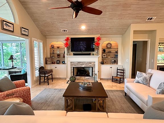 Home is tastefully furnished and with high-end appliances including a bar with fridge and chewy ice machine. Beautiful deck overhanging the Lagoon with views of the intercoastal waterway. Patio off deck has a stone fire pit and swing chair. Home is in quietest back section of the neighborhood on a dead end street overlooking the marsh.