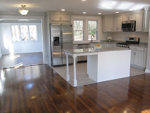 Elegantly designed & restored Ranch (practically new). Offering high end amenities, this stunning 4 Bed / 2 bath home is deceivingly large. The open floor plan offers ease of entertaining and comfortable family living. The kitchen w/ center Island, granite counter w/ backsplash & SS appliances, oversees a large bright family room w/ a bay window & fireplace. The large bonus room w/skylight windows lead to a spacious deck overlooking the private backyard & patio. Central air throughout. Interior access to the garage. Professionally landscaped. Great commuter location with easy access to highways, schools & shopping. Open house Saturday 12-2, Sunday 1-2
