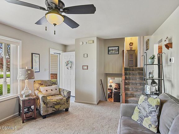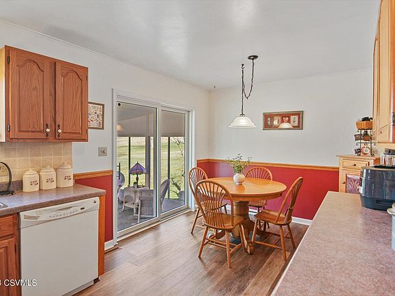 Welcome to this charming home situated on a large spacious lot in the desirable Pineview Estates offering calm scenic views! Step inside to a cozy living room with carpet, ceiling fan and window treatments that leads into the kitchen featuring laminate floors, tile backsplash, crown molding, chair railing, stainless steel appliances, ample cabinet space and an eat-in breakfast area with access to the sunroom. Three season sunroom includes carpet and a ceiling fan, a great space to sit and watch the seasons change. Three generous bedrooms and full bath with access from the primary bedroom. The lower level offers a spacious open family room with laminate floors, window treatments, ceiling fan, chair railing and a propane stove, a great space to relax and unwind.