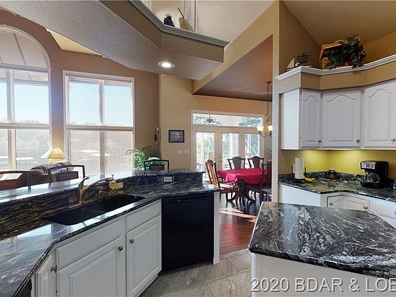 Amazing Lakefront location in the Estates Subd- offering central sewer, commty pool and street lights! Ideal by land & water. Well cared & offers several recent updates. Upon entering you are greeting by a stunning Foyer and a wall of windows to take in the amazing lakeview. Beautiful soaring ceilings, newer hardwood floors, granite and stainless appliances. Main level living w/Great rm & fireplace, full laundry, area for a formal dining area & large screened in deck.The Master Suite is awesome & recently updated. The lower level offers great entertaining w/ family rm, bar, and two en-suites, bathrm, & 4th bedrm.Offers an exercise area/office (or possibility of 5th bedrm)- easy driveway w/ oversized garage and easy access to the dock!Sits in an amazing cove w/ a main channel view. The dock is included w/cruiser slip ability(please call agent for details).This home has been very well cared for. Owner open to some furnishings available.A true neighborhood setting!New roof in 2015.
