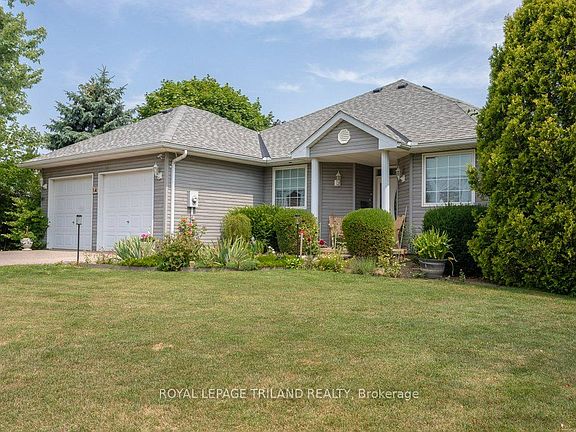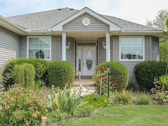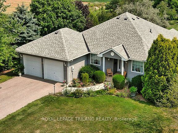 Well-kept 3 bedrooms and 2 full bathrooms Bungalow on a dead end street with a double car garage, situated on an approximately 1 acre park like property completes with fruit trees (pear, cherry, mulberry, grape vine), fish pond plus a vegetable garden. The primary bedroom has a 4 piece ensuite bath with jetted tub. The main floor also includes another full bathroom, two extra bedrooms, direct entrance to the garage and a laundry area. The open concept kitchen has lots of cabinets and counter space with an island. The kitchen features tiled backsplash, under cabinet lighting and granite countertop on the island. Off of the kitchen is a dining area that receives lots of natural light which looks out to the deck and beautifully landscaped yard. The living room just off of the kitchen is spacious with hardwood flooring. Lower level is finished with plenty of storage area. When you first get to the lower level, you will find a great-sized rec-room and living room, small workshop and another room to suit your needs. Many features in this custom built home including 200 amp service that allows for generator hookup, 9 ft ceiling on main floor, it also has a gas dryer, a sump pump with a back up battery (2023), HRV system, updated Furnace (2024), Hot water tank (2024) and a gas line for the BBQ just to name a few. Only 5 minutes to Lake Erie and 7 minutes to the 401. Enjoy this spring with the yard you have always wanted. Enough property to build your dream shop too!