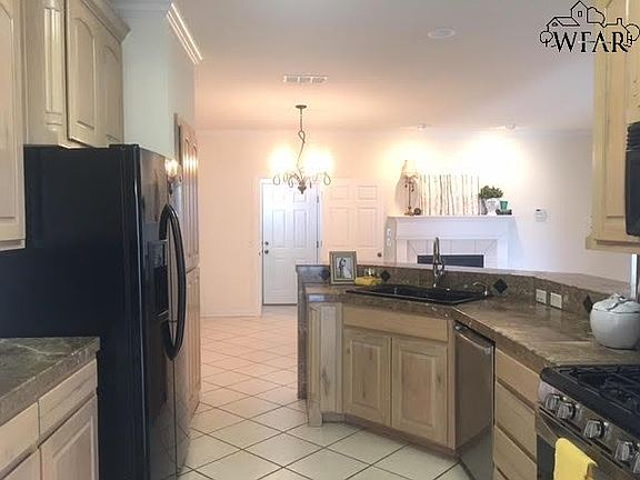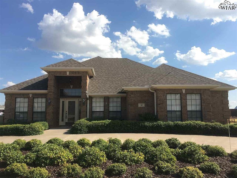 Immaculate home! This large, corner lot home features 4 bedroom, 3 bath, 2 living areas, 2 dining areas, and a 3 car garage! The open kitchen features marble counters and stainless appliances! The master suite features separate tub/shower, double sinks, and 2 closets! Don't miss the privacy fenced yard with covered patio, RV parking, and storage building that has both electricity and air conditioning! Home also features gas fireplace, INSIDE safe room/storm closet, sprinkler system, and NEW Roof in 2013!