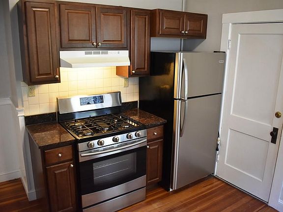 CLASSIC WEST ROXBURY TWO BEDROOM with gleaming wood floors, large entry foyer leads into the large living room and then large dining room with period built in hutch. Eat in kitchen with granit counters, five burner stainless stove, stainless fridge, and dishwasher plus large pantry all rounded out with beautiful wood floors. Ceramic tile bathroom, large linen closet, and two bedrooms with wood floors. Back porch leads to terraced garden. Basement has washer and dryer. 200 feet from the West Roxbury Commuter Rail stop. Close to Roche Bros shopping, Bellevue Hill, and Catholic Memorial School. Fantastic rental opportunity.
