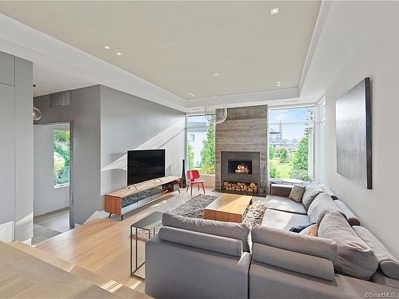 An impeccable home with WATERVIEWS throughout! Tucked in the Saugatuck Shores neighborhood, this modern beach house has been designed and curated to create a feel of approachable luxury. The mix of warm beachy woods with smart, smooth finishes and oversized windows play seamlessly together. Upon entry, the main floor welcomes with light wood floors, high ceilings and streamlined kitchen w/seamless integration of storage and top appliances. The dining area flows right into the great room, complete with a wood burning fireplace flanked by floor to ceiling windows with views of Bermuda Lagoon. The whole space overlooks the whimsical backyard think sparkly string lights draped over the effortlessly cool dining table and firepit. There is also an office/bedroom/bath rounding out the main floor, and just a few steps down to the lower level there is an additional rec-room w/mudroom. Upstairs the primary bedroom features beautiful built-ins, waterviews & bright bath w/shower and tub, Two bedrooms, full bath, laundry, and a fun landing space! Continuing to the top floor, a flex room for lounging, play, work, gym includes a cool beverage station by the doors leading to the spectacular roof deck. The views of the Harbor from are just fabulous, its the ultimate outdoor living room. This home is FEMA compliant, a quick drive or bike to the train, Saugatuck shops and dining and just steps to the wonderful boat and water activities that the Saugatuck Shores community enjoys!