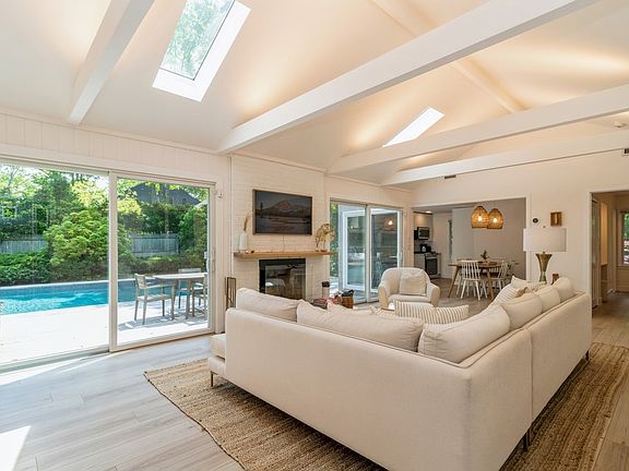 Rental Registration #: 22-867 Just 2 miles to East Hampton Village and 5 miles to Sag Harbor Village sits this freshly renovated, light-filled home nestled on .63 acres on a quiet cul-de-sac. The space has been thoughtfully decorated with a natural palette and includes top appliances, fixtures and smart devices fully renovated in 2022.There are four bedrooms total. On the first level, there is a primary ensuite bedroom plus 2 additional bedrooms and full bath.The newly renovated lower level has the fourth bedroom with an additional full bath.The open living area offers a cathedral ceiling with skylights and a fireplace. Multiple sets of sliders off the galley kitchen, the living area and the guest bedroom create a true indoor-outdoor environment. The lower level also has a gym with a Peloton Tread, Peloton Bike, free weights and more plus a media room and laundry room.The lush, fenced yard is complete with a heated 16x40 salt-water pool, an outdoor shower, extensive decking and patio areas where to sunbathe and dine alfresco. The driveway is also equipped with a level 2 electric vehicle charge point (240v).
