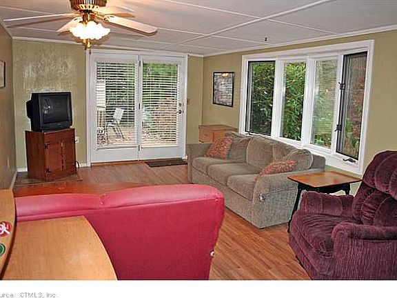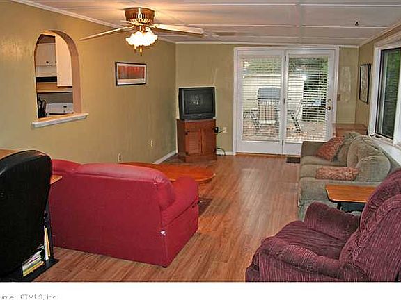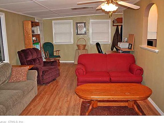 Beautiful mobile home with family room extension. New roof 2011. New interior doors and range 2013. Many upgrades. Located near the end of cul-de-sac and bordered by state land. A small stream runs at the end of the yard. Move in ready. Large private deck and storage shed. Park fee $390 per month plus $10 for pet. Metered water. Rented propane tanks. Hearth in family room suitable for propane fireplace.