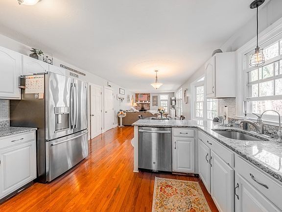This beautifully updated spacious colonial offering 4 bedrooms with 2 full and 2 half baths nestled on a 1.55 Acre lot on a quiet dead-end street across from 100+ acres of conservation land and hiking trails. The first-floor family room w/ fireplace opens up to the spacious eat-in kitchen with granite countertops. Hardwood floors beam throughout the living and dining rooms. Enjoy backyard privacy from the screened-in porch. The 2nd floor boasts 4 large bedrooms with custom built-in closets. The master bedroom has a spacious custom walk-in closet and a sky-lit master bath with a jacuzzi tub and shower. Both full baths have granite counters and ceramic tile. Conveniently located, 2nd-floor laundry and most recent updates include stainless steel appliances, well pump, water storage tank, and top-of-the-line filtration system. This home also has a gorgeous finished basement great for entertaining with another half bath and direct access to a spacious patio.