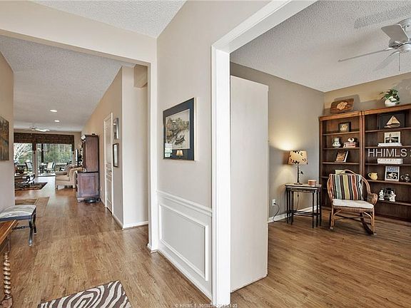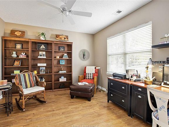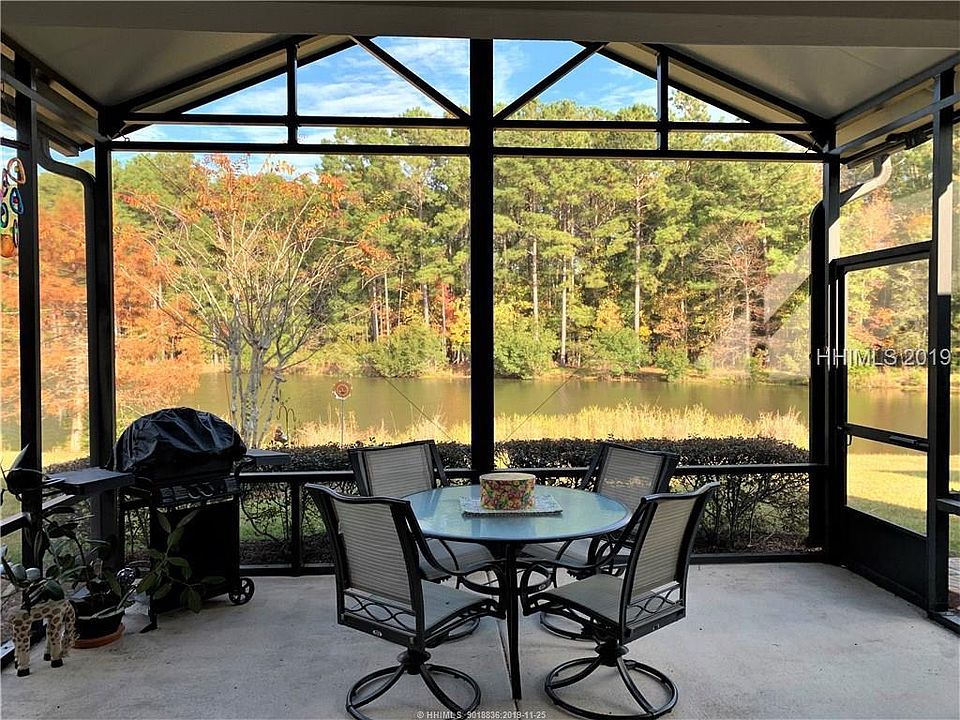 SUN CITY: Take advantage of Beaufort Cty taxes! Breathtaking lagoon view can be enjoyed from large screened Lanai in this 2Bed/2Bath HERON boasting a Den/Office that can serve as 3rd Bed. Gourmet Kitchen w/bay window, lg prep area, pantry & formal/informal Dining. Hardwood flrs in foyer, kitchen & main living area enhance layout of open floor plan; perfect for entertaining. Owner Ste w/bay window, bath w/dual sink raised vanity, stand-alone shower, soaking tub & W/I closet. Split bed's ensure Owner/Guest privacy. Over-sized Den can serve as office/TV/craft rm. Huge laundry w/utility sink & built-ins provides plenty of storage. Pull-down attic