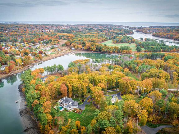 Spectacular York Riverfront estate, offering privacy, yet direct river access via deep water dock. The pool and jacuzzi are surrounded by manicured gardens/lawns. The shingled and stone residence offers a beautiful large double door entry into grand tile foyer. Custom built-ins in the study/library with gas fireplace, French doors opening to the front porch. Breathtaking stone fireplace and river views greets you in the open living room. Main level master bedroom suite with 2 walk-in closets and access to outdoor deck. The stunning open concept custom kitchen/dining area with a screened in porch and large accordion doors allows for seamless indoor/outdoor entertaining area. 2 large guest bedroom suites on second floor, both with private decks overlooking the water. Full walk-out basement with Gym, Sauna, full bathroom, family room, and an additional guest bedroom suite. Also, access to a 4th utility garage bay. Versatile bonus room above the 3 bay attached garage. Custom mudroom/closets direct from garage. Detached 3 bay garage with full bath and finished space above. Full house generator, separate full detached garage generator. So many versatile spaces for family, friends, and work/office space for stay at home work or school.