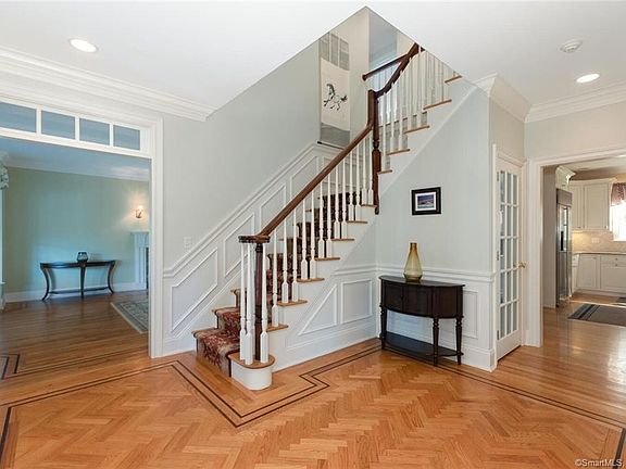 Walk to town Exceptional value Spacious 5 Bedroom Colonial in the heart of Wilton. Custom features abound in this light and bright home with great floor plan. Oversized chef's kichen open to expansive family room with stone fireplace. Gracious formal living room with fireplace & formal dining room with tray ceiling. Study w/ built-ins completes 1st floor. A large master suite with full spa bath can be found on the second floor. Along with 3 good - sized en-suite bedrooms & laundry room. The 5th en-suite bedroom is on the third floor. Entertain with ease on the blue stone patio - french doors in study & kitchen provide easy access. The front porch is perfect to start or end your day. Put your finishing touches on this Great South Wilton home The property includes a whole house generator. Convenient to schools, town and highways. The Norwalk River ValleyTrail is steps away - offering miles of walking options. Location, Location, Location.... A commuters dream