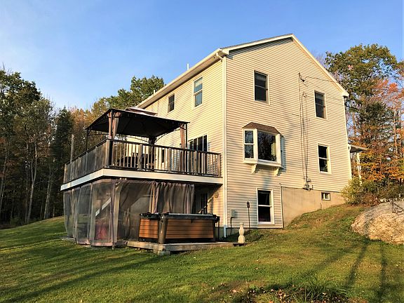 Looking for a private spot close to all the action? Sited on 2.66 acres of woods and gardens, you will find this delightfully private colonial. Upon arrival you are greeted with a farmer's porch up the path through the big sunny front yard. An open and bright first floor includes a formal living room, large kitchen with dining area and a family room which could also be used as an office or first floor bedroom. Step out onto the new cedar deck from the dining area for a relaxing spot to enjoy the sunsets. The laundry and a half bath finish the first level. The two story foyer provides access to the second floor which has two good sized secondary bedrooms, a full bath and a master suite with walk-in closet and private bath. The daylight basement has been partially finished and leads out to the back yard through double doors onto a paver patio. The upper deck with its rain screen offers a shady spot underneath to enjoy the woods and wildlife. The property abuts conservation land and there are views of the woods and gardens from every window.