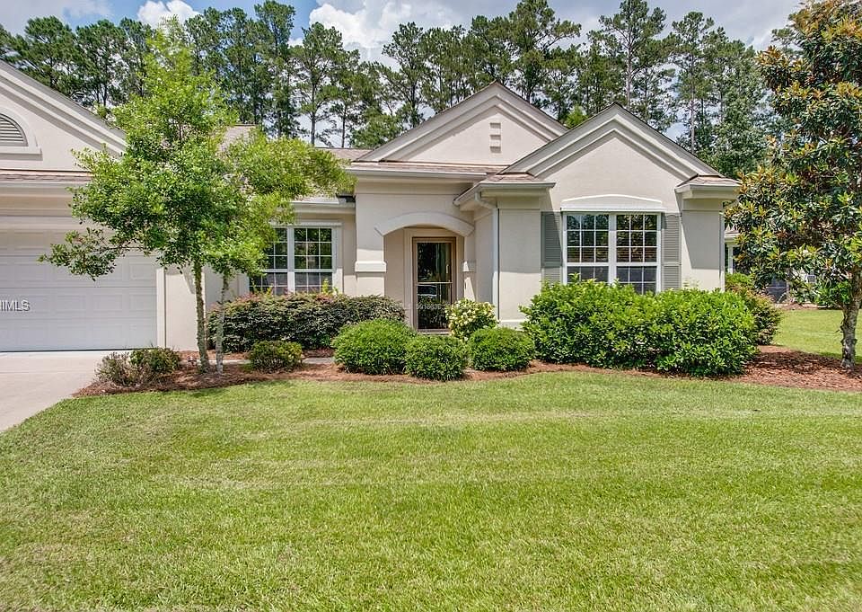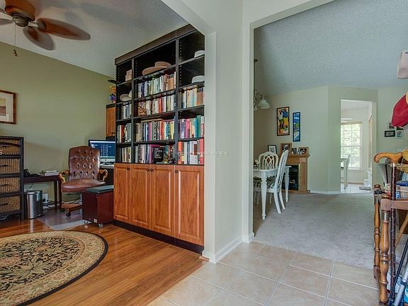 Wren model located in the Aviary with premium view located on a lagoon with woods and fountain. This Villa features 2 Bedrooms, 2 Bathrooms, Den, 2 Car Garage and Covered/Screened in Porch. Eat in kitchen features white cabinets, white appliances, laminate counter tops, ceiling fan and tile floor. Tile floors are in the foyer, bathrooms, laundry room and kitchen. Carpet in the bedrooms and wood floor in the den. Owner' suite features a bay window with private views of the lagoon, fountain and woods. Den has custom built in shelves and desk. Second bedroom has custom desk and murphy bed.