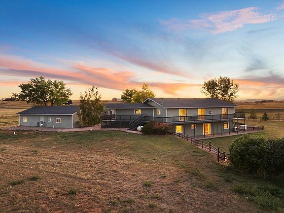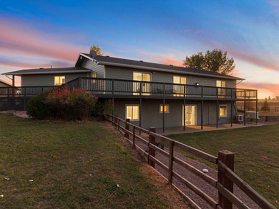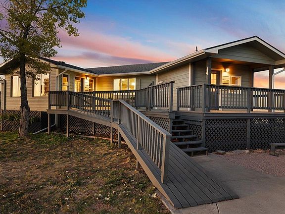 Singer Team Realty Presents the beautiful Wyoming Black Hills. 14 Red Bluff Road in Beulah WY., this home is nestled on 5.05 acres with views of the hills in every direction. This 5 bedroom (1 non-conforming) 5 bath home has a large wrap around deck where you can watch the amazing sunsets, as well as a enclosed Sun Room to enjoy your morning coffee. The main floor has a Primary Bedroom, Primary Bath and a spacious open concept Living, Dining and Kitchen with 3 sets of sliders to the deck. Mud Room has a washer and dryer as well as a full bath!. There is a fully finished walk-out basement with sliders that can be used as a mother-in-laws suite or an investment opportunity. Includes a Full Kitchen, Ensuite Bedroom and Bath. 2 Family Rooms, 2nd Bath with a step in jetted tub. A large 2nd Bedroom, an additional smaller non-conforming bed or office with closet. 2 Mechanical rooms with their own Hot Water Heaters and Electrical Panels. Whole house Generac Generator, New Roof and Gutters. New Exterior Paint, Deck Freshly Painted. New Interior Paint most rooms, Carpets Cleaned. Christina Singer Keller Williams Realty Black Hills 605-920-1518
