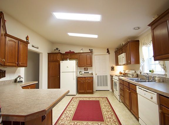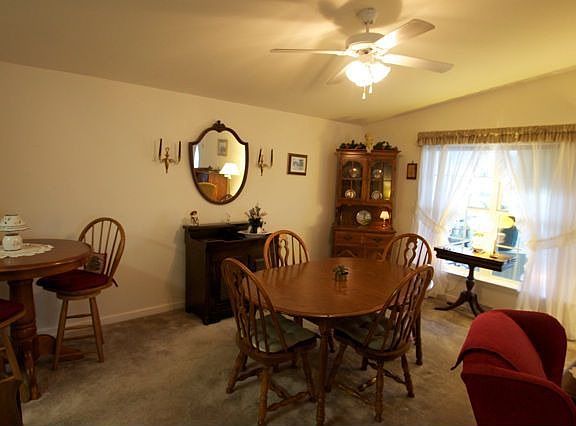 LARGEST CHARLESTON!!! Extra 8 ft added to really enlarge kitchen, living room & dining room to create an open floorplan & welcoming atmosphere w/ natural lighting to illuminate home. Plenty of room to entertain. Original owners made custom modifications & extensions to this home making it a one-of-a-kind! Ideal location in Spring Valley Village. Relax in this over 55 community surrounded by gorgeous hillside views. Full front porch is a great gathering place or nice for a quiet morning breakfast spot. Huge Eat in kitchen w/ cherry cabinets, pull out shelves & lots of counter space. Separate office/den or could be a bedroom w/ french doors is offset from the main hall. Master suite has walk-in closet & large master bath w/ double size seated shower. Hall bath & 2nd bedroom. First floor laundry. Garage is extra long so you can have a workshop area or extra storage. Fee includes: lot lease, snow removal, trash removal, lawn care & membership to the community clubhouse. Immediate occupancy is available.