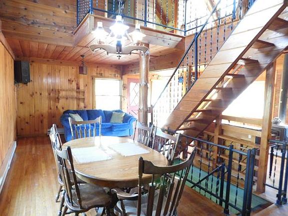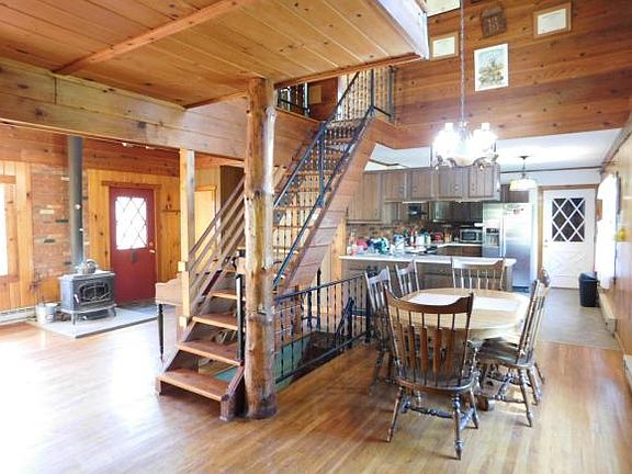 Looking for a rustic setting with woods and privacy yet close to Ithaca? This is the ideal spot for you! Set on 2.3 acres, this log-sided Cape offers an open concept design with wood accents throughout! Woodstove warms the living/dining area, with 2nd floor balcony walkway. Large kitchen with ample counter space. 3 levels of living space includes 3 beds up with full bath, main level bed with 1/2 bath and lower level fam room, 4th bed and 2nd full bath. Laundry also in lower level. Attached 2-car garage a plus! At the end of an established cul-de-sac in Ithaca Schools, minutes to CU.