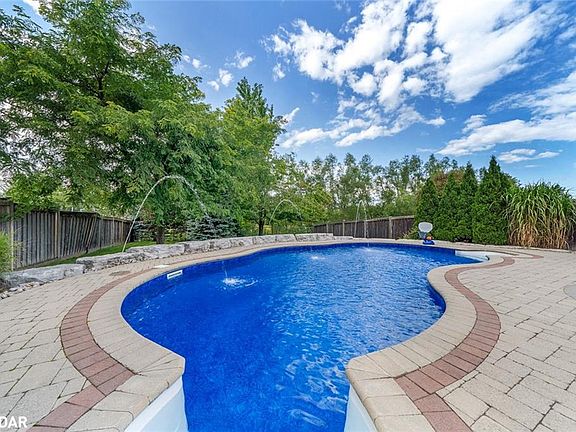 Welcome to 14 Regalia Way, Barrie. This executive-themed property features it all! Luxury, class, style, and location! Located minutes from everything on a quiet court, and backing onto a pond. Great curb appeal as you arrive, featuring custom interlocking stone and custom stone work. Entering the home gives you a warm, executive feel. A Large foyer and winding staircase greet you with a big, bright office, off to the side. The kitchen, family, and great room area is wide open with granite counters, tons of custom cabinetry, stainless steel appliances, and high-end fixtures and finishings. This flows to a large family room heated by a gas fireplace, and all are finished out with crown molding and custom finishes. This area opens directly out to the deck and an amazing rear yard space. There is a huge separate dining room space for family gatherings, a 2-piece powder room, main floor laundry, and an inside garage entry. The garage is any guy's dream. The floors are completed with Polyaspartic rubberized floor coating. It is outfitted with 'proslat' wall and shelving systems; the insulated doors have been upgraded with a whisper-quiet opening system. Upstairs, there are 4 bedrooms, 3 with their own full bathrooms. The bedrooms are all a generous size with good colours, custom mouldings, colonial doors, brushed nickel hardware, high-end ceiling fans, and California custom blinds. The Master suite area features his/her separate closets, custom mouldings, high-end finishes, a large jet tub, a large glass shower, a separate toilet room, a towel warmer, heated floors, and his/her sinks. The basement walks out to the rear yard pool area and has a 5th bedroom and a finished rec room area. The windows were replaced by Kempenfelt windows in 2021. Roof 2018, Furnace and Central air 2022. Garage doors 2017. The attic has been upgraded with R50 insulation. New pool liner and cover 2024. This property needs to be seen to be appreciated.