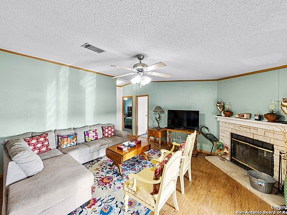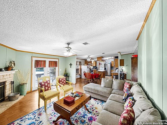 This super spacious mobile home sits on 10.4 acres just 20 minutes from Main Street in Fredericksburg, offering serene Hill Country views and endless possibilities. The split floor plan features a master suite with an en-suite bath, walk-in closet, and dressing room, plus three additional bedrooms and a full second bath. Enjoy two living areas-one with a cozy fireplace and French doors that open to the swimming pool and sun-soaked deck. The large kitchen includes a pantry and flows into the dining room, while a mudroom/laundry area and generous storage space lead to the back deck. A guest cabin offers great potential for rental income or hosting visitors. The property is cross-fenced, gated, ag exempt, and unrestricted-perfect for your dream retreat or hobby farm. Outside, you'll also find a dedicated tool shed stocked with assorted tools and lawn equipment, providing a ready-made setup for property maintenance or outdoor projects.